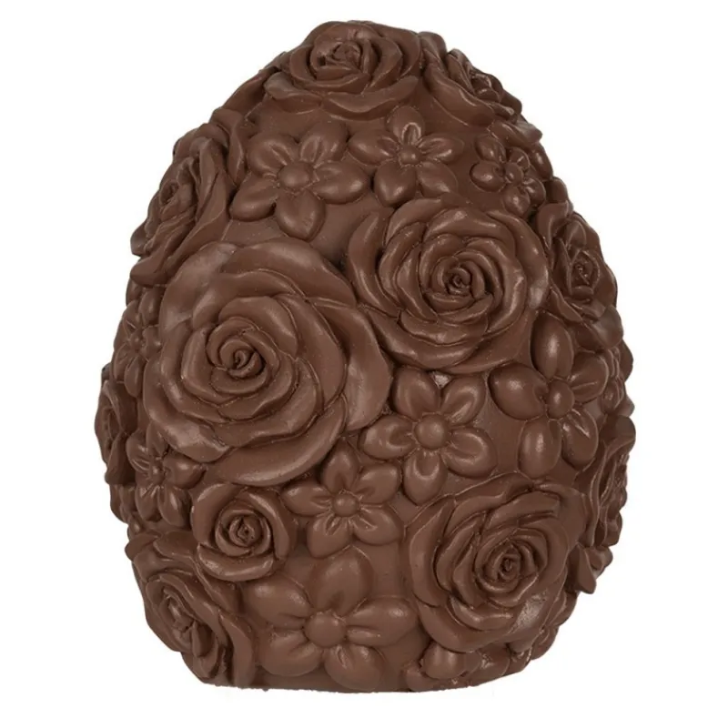 Uovo Chocolate 11×14 cmUn’elegante decorazione a forma di uovo di cioccolato, perfetta per il periodo pasquale. Realizzato in resina decorata a mano, aggiunge dolcezza e raffinatezza alla tua casa.