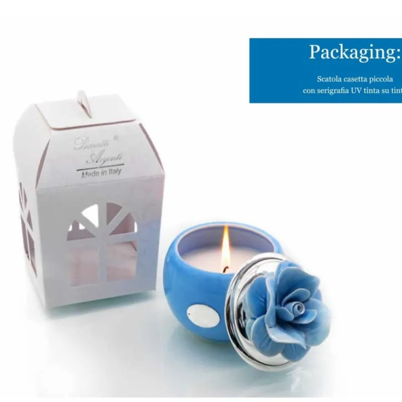 Se stai cercando una bomboniera raffinata e di alta qualità, la candela artigianale alta 12cm della ditta Baratti Argenti con una rosa in capodimonte sul coperchio è la scelta perfetta. Questo prodotto è realizzato con una pregevole manifattura artigianale, il che significa che ogni pezzo è unico e fatto a mano con grande cura e attenzione ai dettagli.