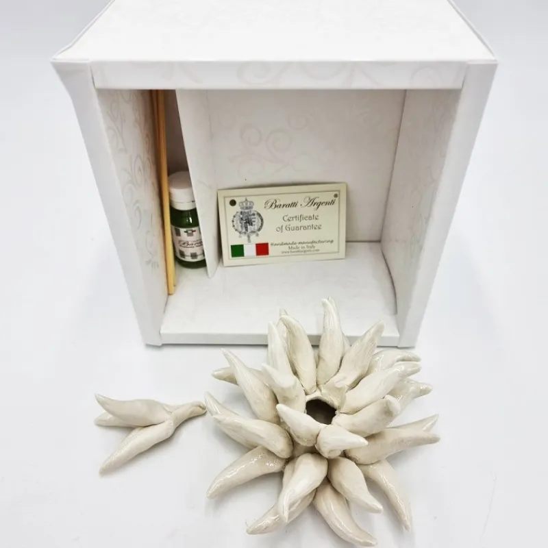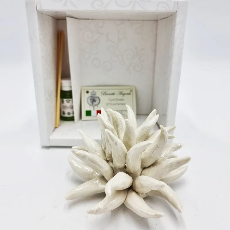Profumatore Riccio Avorio Ceramica di Capodimonte, bacchette ed essenza incluse. 12x12cm