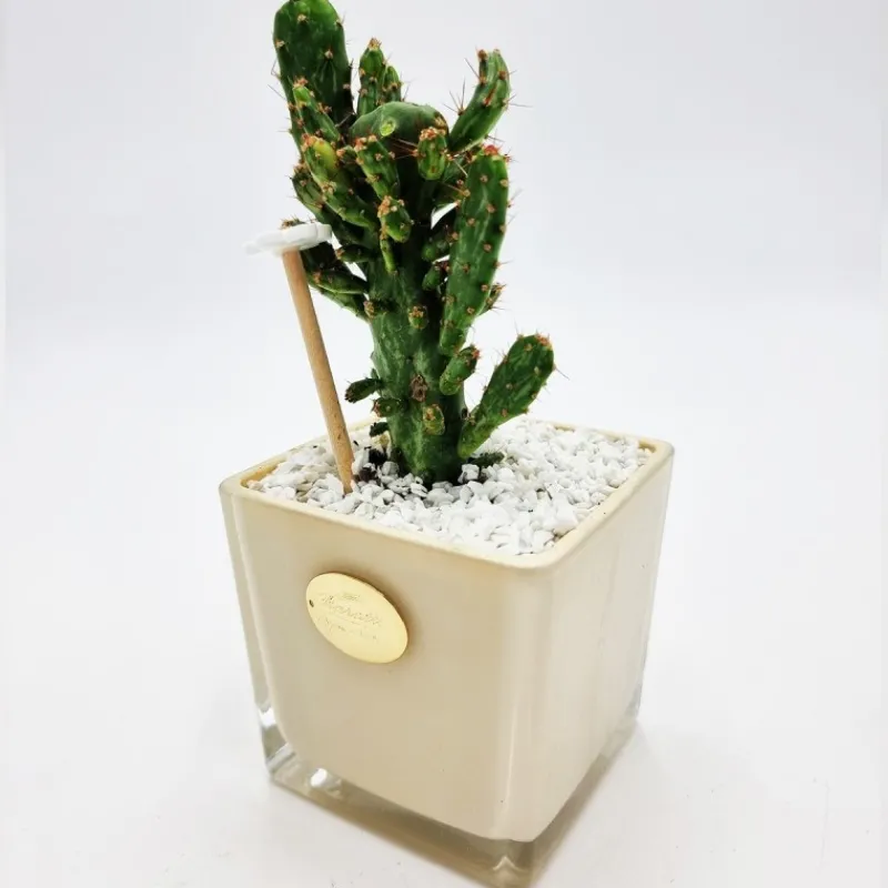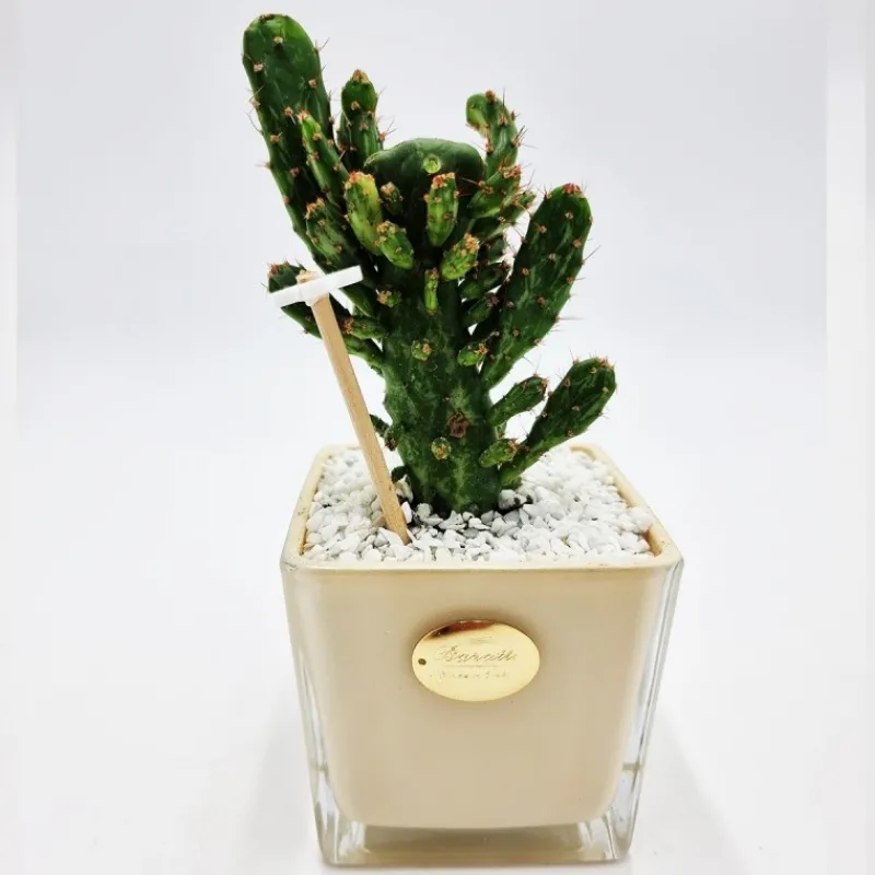 Vaso Crema con Pianta Grassa Vasetto in Vetro, Piantina vera 19x10x10cm