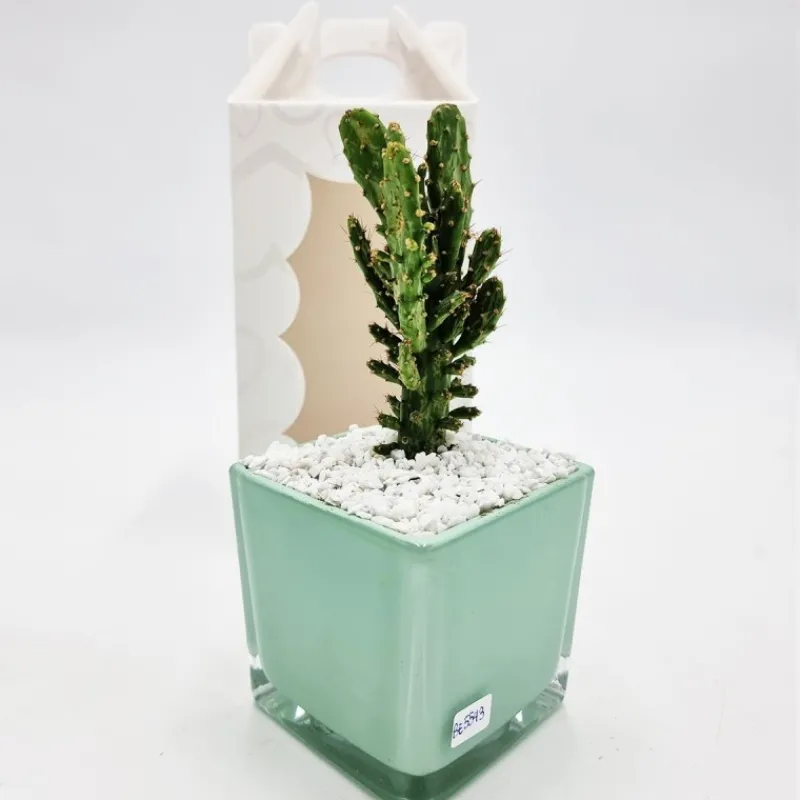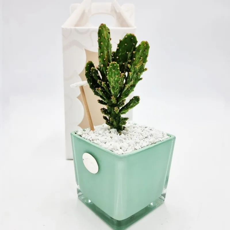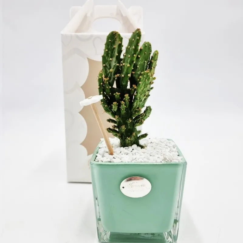 Vaso Tiffany con Pianta grassa Vasetto in Vetro, Piantina vera 19x10x10cm