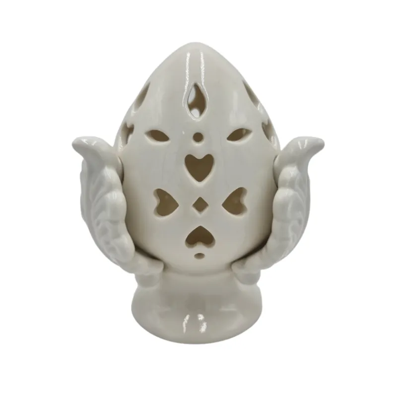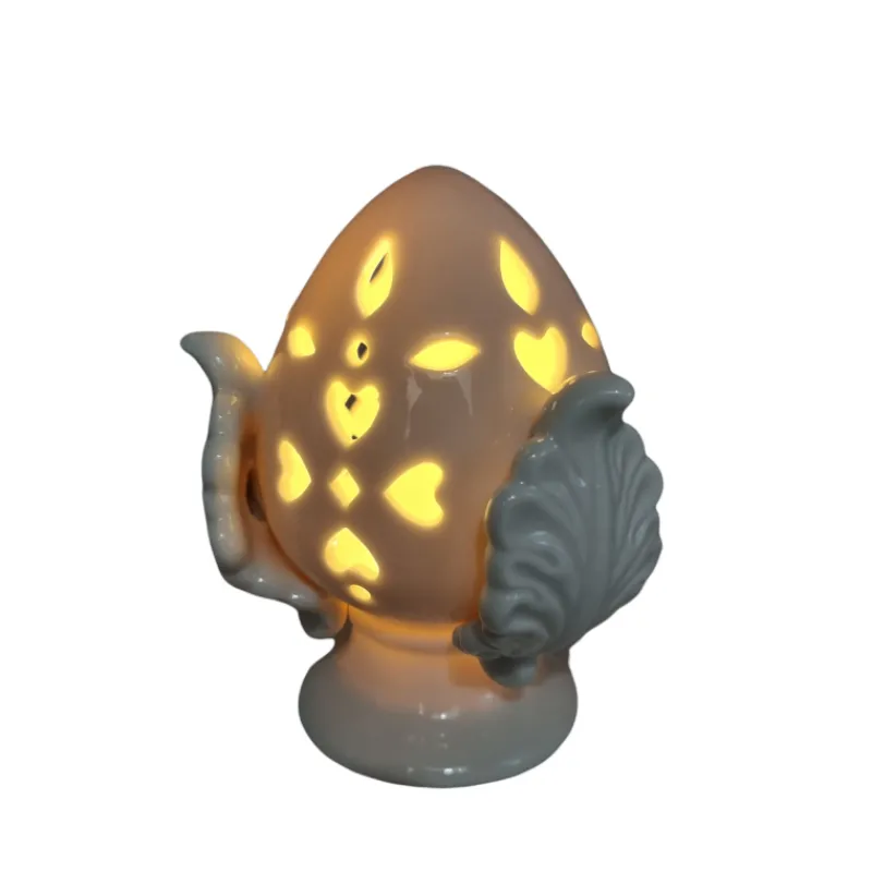 Pumo Pugliese in Ceramica Bianca con Led medio 10x10x12,5cm