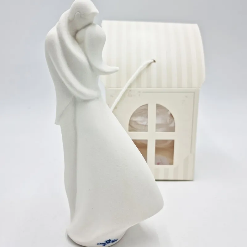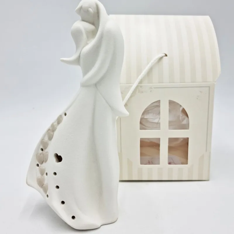 Statua Sposini in Ceramica Bacio con Led Altezza 20CM Fatto a mano in Italia
