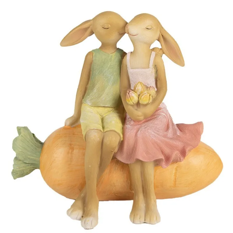 Clayre&eef Pasqua>Conigli su Carota 17x10x15 cm
