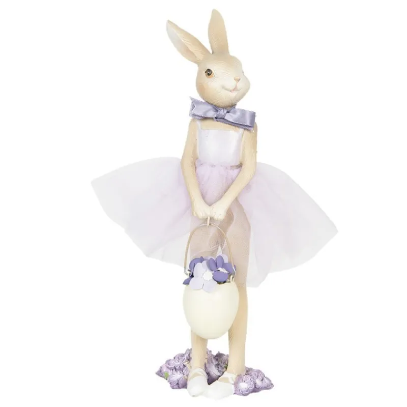 6PR3124 Statua Decorativa Coniglio Lilla 8*8*25 cm