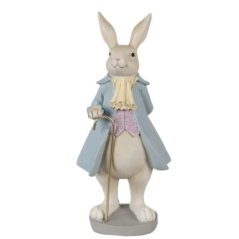 Coniglietto con Bastone 12x9x26cm Resina Dipinta a Mano