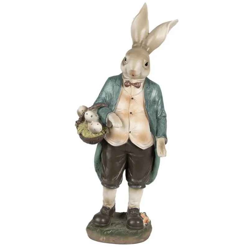 Clayre&eef Pasqua>Coniglio con cesta di uova 17x10x38cm
