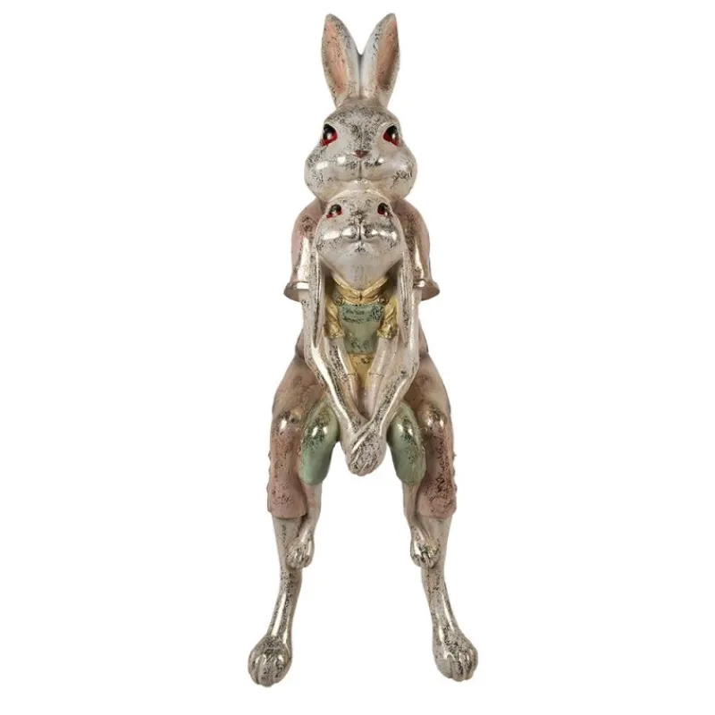 Papà coniglietto con cucciolo 31x24x65 cm Un coniglio in resina con il suo cucciolo, simbolo di amore e protezione.