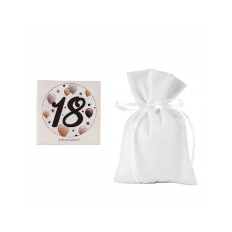 Magnete cementina con sacchetto – Decorazione stampa 18° cm 5 x 5Da oltre Vent’anni siamo famosi per la qualità e la presentazione delle nostre bomboniere.Tutti i prezzi comprendono la confezione (Scatola, Nastri di colori a scelta, Bigliettino personalizzato con i Dati della cerimonia, Confetti di Prima qualità) Le bomboniere vanno ordinate con 15 giorni di anticipo rispetto alla data della cerimonia.Contattare al numero presente sul sito per visionare le confezioni e esprimere eventuali preferenze.In fase di ordine scrivere nelle note tutti i dati riguardanti la cerimonia:Nome e CognomeData Tipo di Cerimonia.