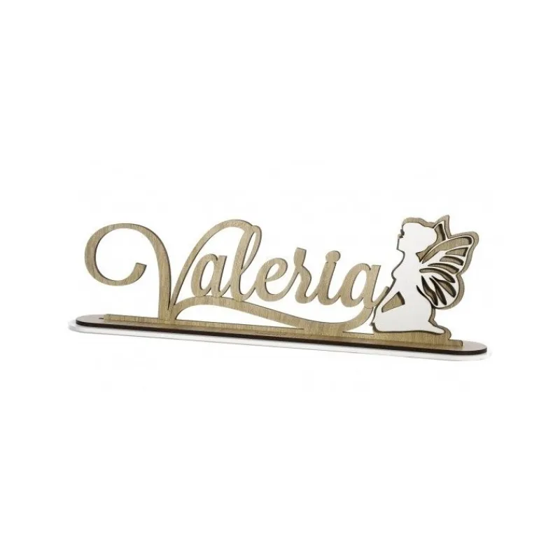 Scritta con base nome e fatina in legno tortora – cm 20