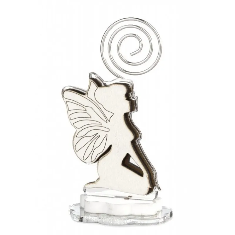 Portafoto clip con fatina in specchio argento – h 10 cm