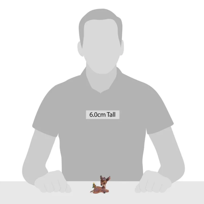 Jim Shore celebra l’ottantesimo compleanno di Bambi con questa bella miniatura, mentre il tranquillo cervo si siede graziosamente con una farfalla.
