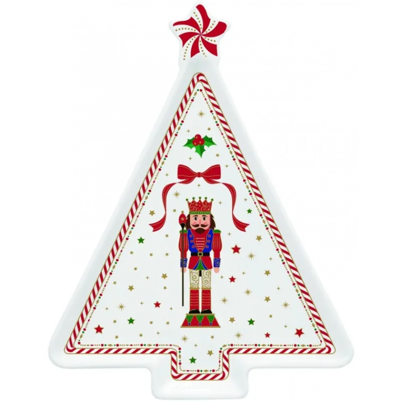 Piatto a forma abete 21×16 cm in porc.in color box NUTCRACKER TWIST