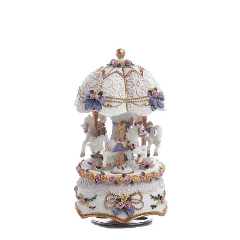 Carillon Carosello Cupola Rosa 15cm Carillon in Resina, realizzati e dipinti a mano. Collezione Encantada” con sinfonie diverse in base alla misura.