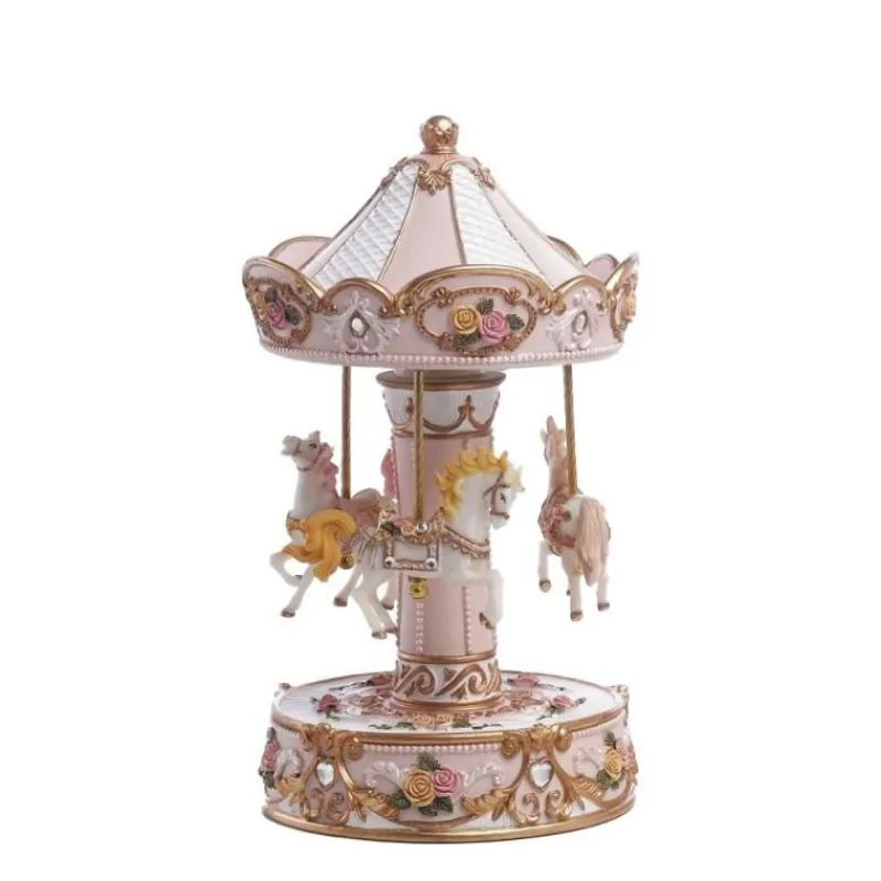 Carillon Carosello Rosa 20cm Carillon in Resina, realizzati e dipinti a mano.