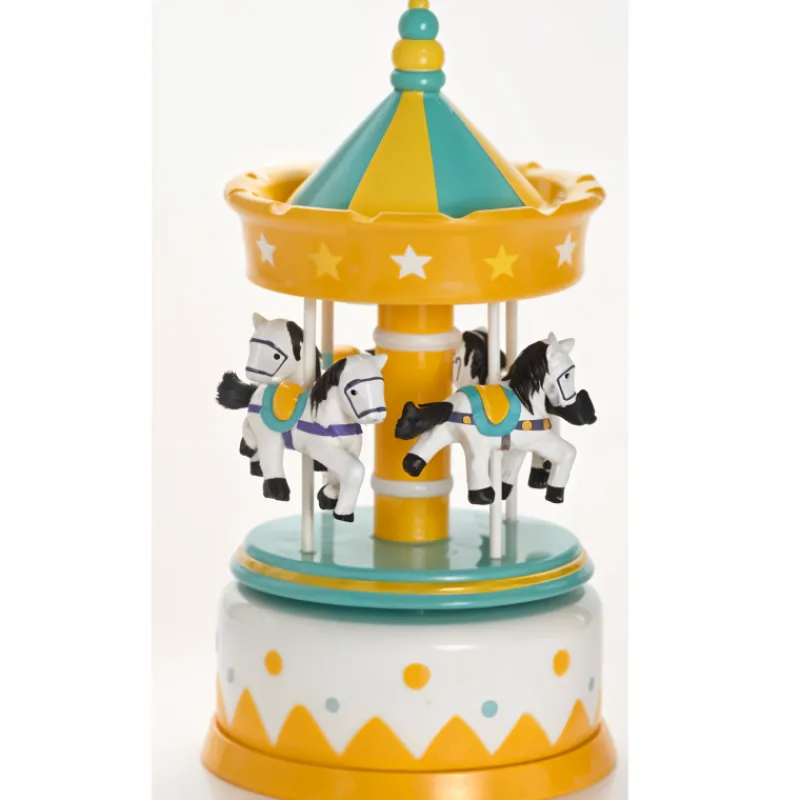 Delizia i tuoi ospiti con la Giostra Carillon “Orange” di Encantada, alta 20 cm. Questo affascinante carillon in legno, dipinto a mano, raffigura cavalli che danzano al suono di una melodia dolce, rievocando l’incanto delle giostre d’epoca.