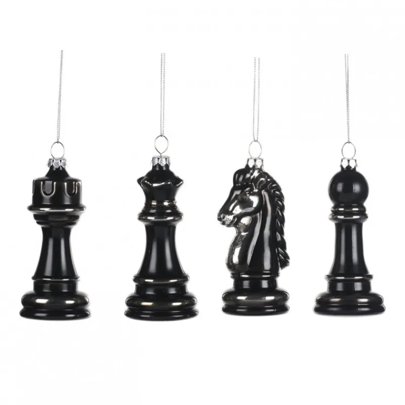 Goodwill Natale>Set 4 Scacchi Neri in Vetro 10CM – Arredo Elegante e Regalo Unico