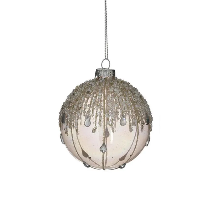 Sfera in Plastica Rosa con Perline Glitter 8cm Diametro