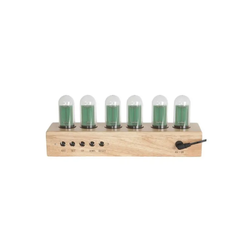 Alloggiamento in legno con diodi avvitati singolarmente per la visualizzazione digitale dell’ora