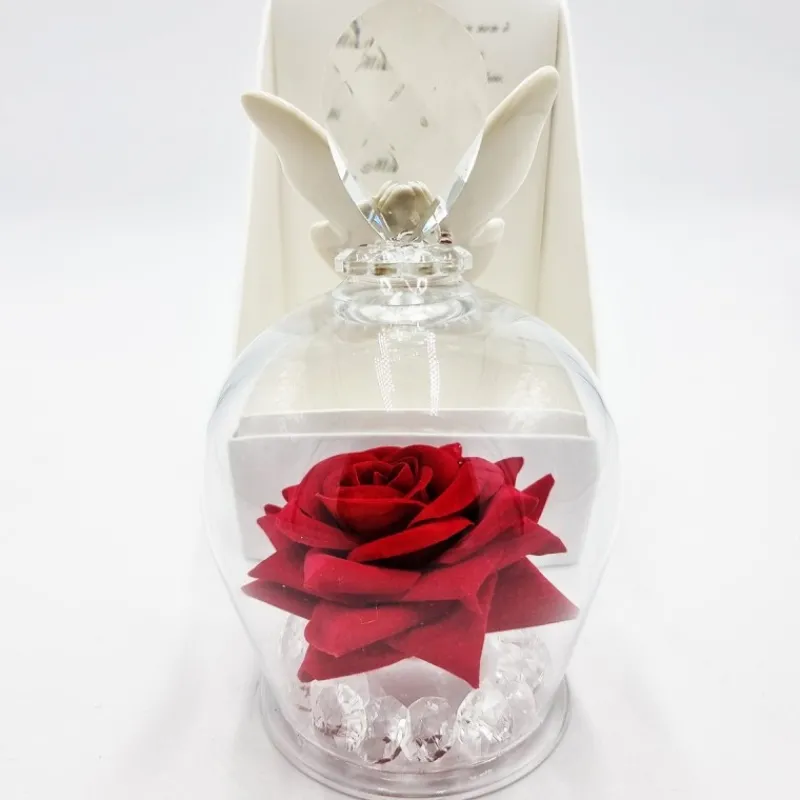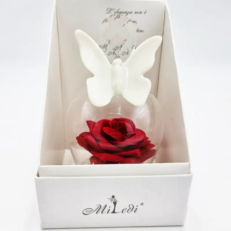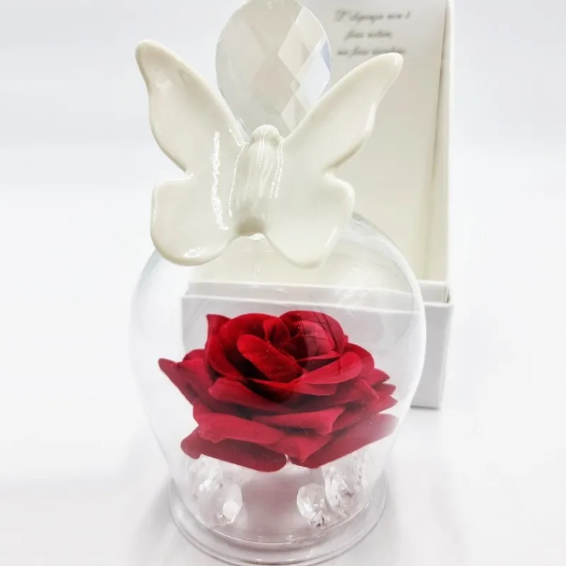 No brand Comunione>Campana in Cristallo con Rosa Rossa e Farfalla Bianca – Bomboniere Eleganti