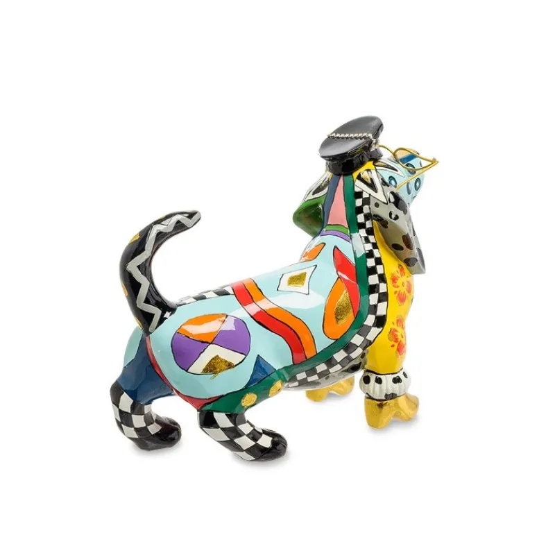 Con una lunghezza di 28cm e un’altezza di 21cm, Mr. Beasley si distingue per il suo stile eccentrico e inconfondibile: indossa un elegante cappello e occhiali, aggiungendo un tocco di sofisticatezza e simpatia. Le creazioni di Tom’s Drag non sono semplici oggetti decorativi, ma autentiche espressioni artistiche che trasformano ogni spazio in un ambiente straordinario. Ogni scultura è il risultato di una lavorazione meticolosa, ispirata alla Pop Art internazionale, e realizzata con materiali di alta qualità per garantire durata e bellezza nel tempo.