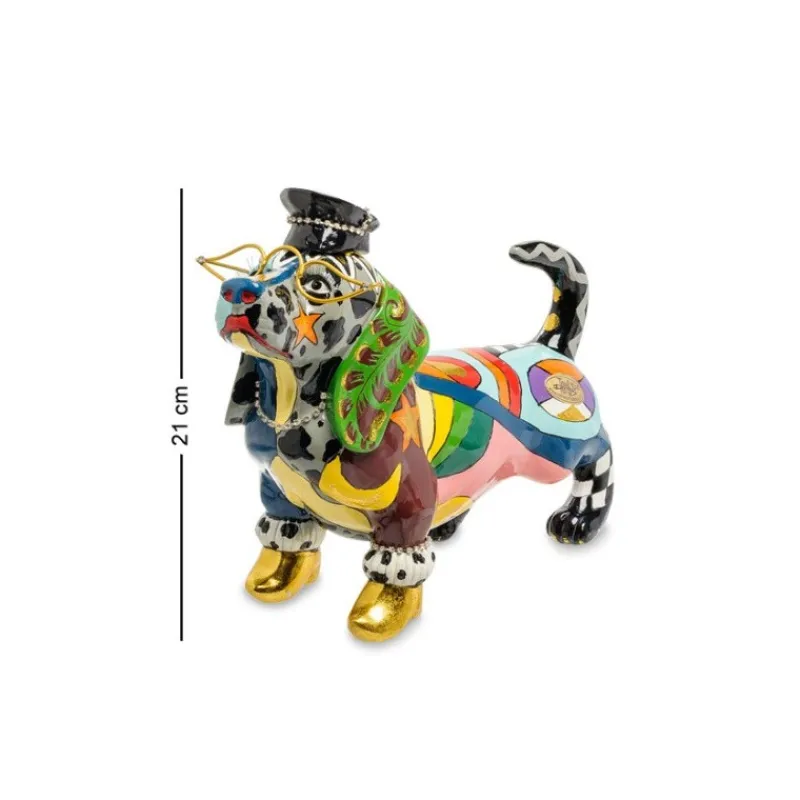 Porta un’esplosione di colore e originalità nella tua casa con Mr. Beasley, la straordinaria scultura artigianale di Tom’s Drag, pensata per collezionisti e appassionati di design d’interni. Questo pezzo unico raffigura un cane Hush Puppy in una posa vivace, realizzato a mano in una combinazione di marmo e resina sintetica, e dipinto con colori sgargianti e dettagli raffinati.